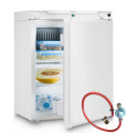Nešetrite na pripájacích komponentoch. Chladničku nikdy nezapájajte priamo na bombu. Vždy len cez regulátor s predpísaným vstupným tlakom chladničky (30 alebo 50 mbar). Chladničky sa zvyknú predávať v sade s pripájacím kompletom. Vyhnete sa zbytočným komplikáciám. Naše pripájacie sady sú prispôsobené na chladničky Dometic a ventily plynových bômb predávaných na Slovensku a v Česku. Odporúčame aj podstavec pod autochladničku a prípadne aj ultrazvukový merač hladiny plynu v bombe.