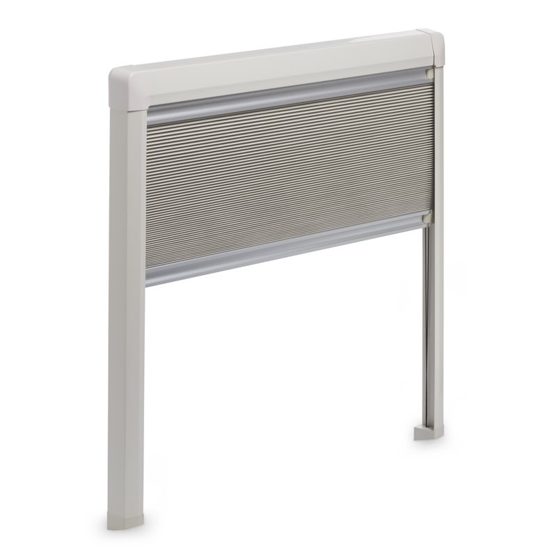 Nový štýl – je v harmónii s modernými modelmi vozidiel • Tieniaca roleta so sieťkou proti hmyzu sa dá samostatne nastaviť • Dvojitý plisovaný materiál v tvare včelieho plástu pre vynikajúcu tepelnú izoláciu • Je zostavená už vo výrobe a je vhodná pre väčšinu okien obytných vozidiel. Dá sa však vyrezať a prispôsobiť tak na okná iných veľkostí • Maximálne zorné pole vďaka štíhlym profilom • Žiadne viditeľné skrutky • Napnutie rolety a sieťky proti hmyzu bez potreby použitia nástrojov